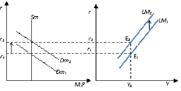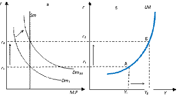 Рис. 4.5. Сдвиг кривой LM: увеличение автономного спроса на деньги