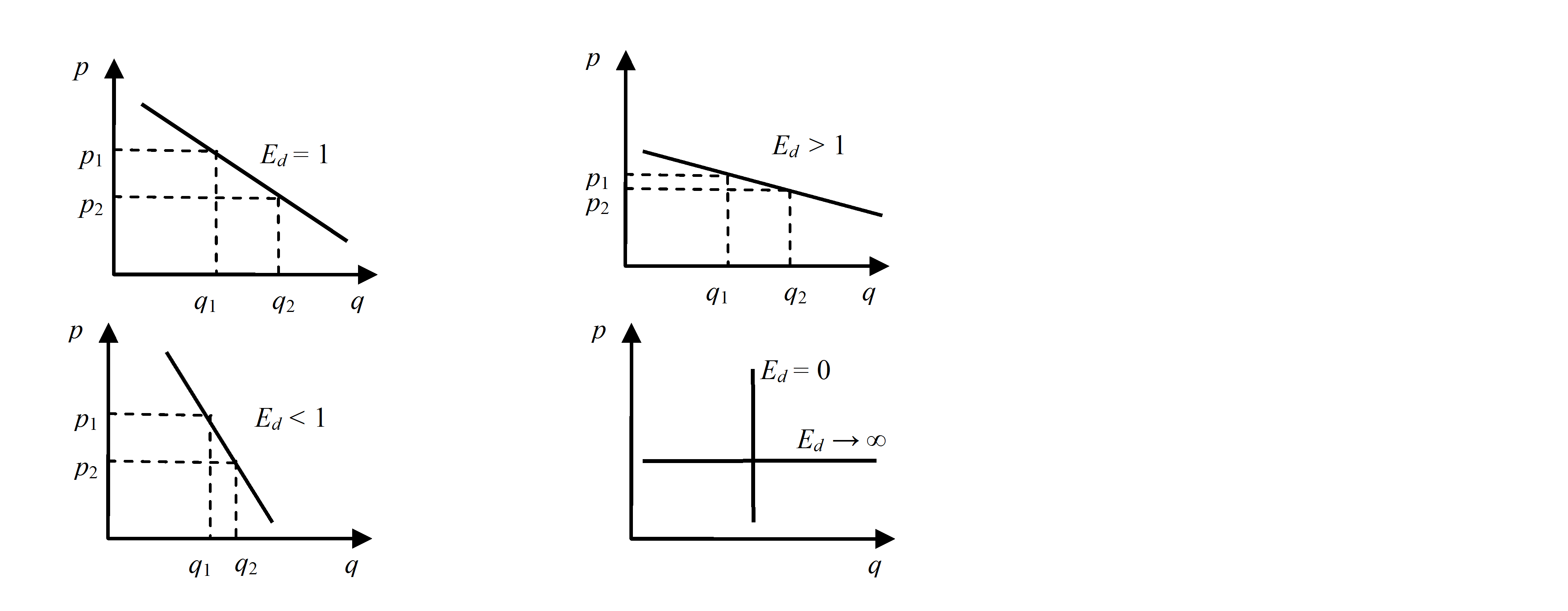 Различные случаи эластичности спроса по цене иллюстрируются графически на рис.