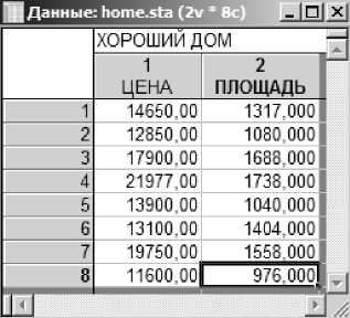 Создадим файл и внесем в него данные стандартным образом. Назовем этот файл samolet.sta. В файле содержатся значения двух переменных, измеренные для 17-ти самолетов .