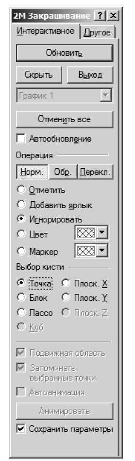 Выберем средство Кисть, щелкнув мышью по кнопке на верхней инструментальной панели системы STATISTICA. Перед вами справа появится панель двумерного закрашивания: 2М Закрашивание .