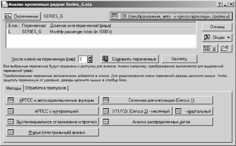 Рис. 8.5. Стартовое окно модуля Анализ временных рядов