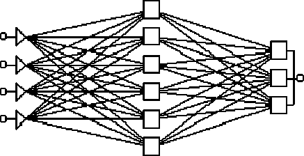 Простейшая сеть имеет структуру прямой передачи сигнала: сигналы проходят от входов через скрытые элементы и в конце концов поступают на выходные элементы (рис. 8.2).