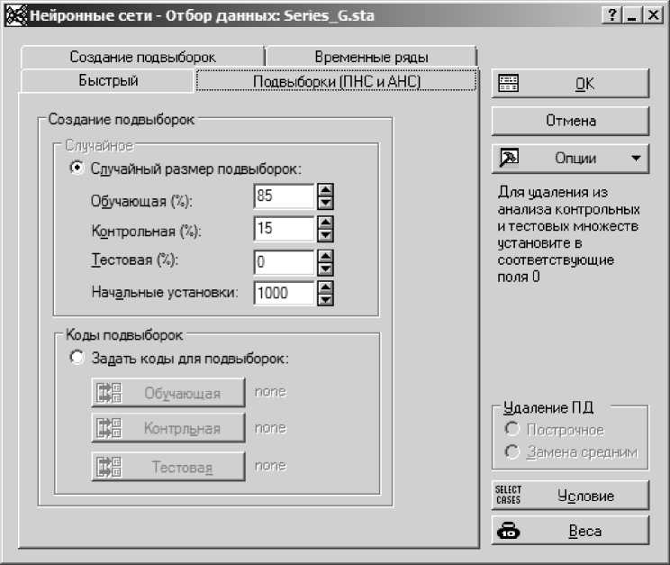 Ключевым моментом анализа является разделение исходных данных на обучающую, контрольную и тестовую выборку.
