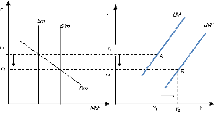 Рис. 4.5. Сдвиг кривой LM: увеличение автономного спроса на деньги