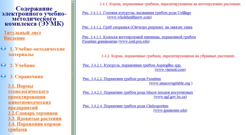 Рис. 6.33. Фрагмент страницы “Поражения кормов грибами”